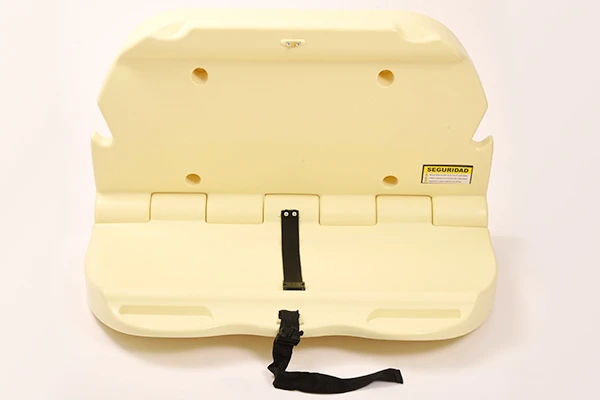 Diseñado para colgar bolsos con pañales y carteras. Sistema plegable con bisagras altamente resistentes. Superficie de apoyo lisa de fácil limpieza y desinfección. Incluye plantilla y kit de instalación.