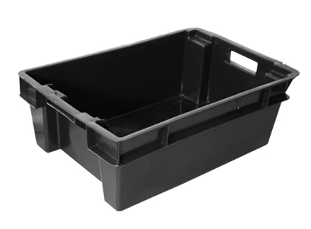 Paletizable, embonable, apilable, cerrado, reforzado, bordes suaves, admite logo.