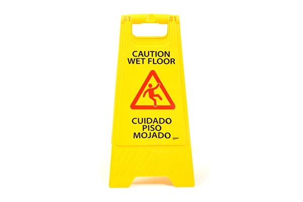 Cartel de plastico inyectado virgen, liviano y plegable con inscripcion de prevención en Español y en Ingles en ambos lados. Ideal para acompañar la limpieza de pisos o tareas de mantenimiento para preservar de manera segura, efectiva y libre de riesgos de caídas en las distintas áreas.