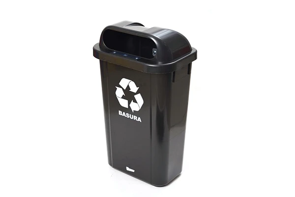 Cesto Buzón de plastico inyectado virgen de polipropileno de alta resistencia de 50 lt. Con bordes para evitar la entrada de agua. Superficie metálica en la boca del cesto para apagar colillas de cigarrillos. Colores y simbología + texto para la correcta separación y clasificación de residuos. Soporte metálico trasero en cesto para fijarlo a la estructura. Incluye tornillos de fijación. Tapa de abertura frontal con llave (incluída) Superficies internas pulidas y con bordes redondeados que facilitan su limpieza e higienización. Para usar con estructura metalica reforzada para 3 ó 4 cesto Buzón de 50 lt. Ideal para exterior.