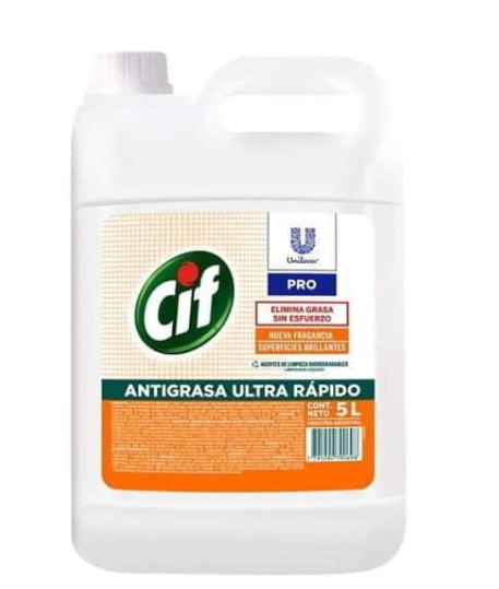 Cif Expert Limpiador Antigrasa es un desengrasante líquido que con su tecnología y su nueva fórmula brinda una limpieza fácil y permite limpiar con el doble de eficiencia y la mitad del esfuerzo, ayudando a eliminar rápidamente hasta la grasa quemada. Las manchas de grasa no deberían ser un problema cuando existen productos desengrasantes especialmente formulados, tal como el Gatillo Cif Antigrasa, con el cual se pueden obtener excelentes resultados en manchas de grasa acumulada. Además, tiene una fragancia biodegradable y su botella está hecha con plástico 100% reciclado y reciclable. La poderosa fórmula de CIF Antigrasa elimina fácil y rápidamente la suciedad dejando las superficies brillantes, como nuevas. CIF ha sido formulado con materia activa biodegradable. Algunas de las tantas superficies que se pueden limpiar y desengrasar son: anafe, cocina, pileta, lavaplatos, mesada, mesón, campana, extractor, azulejos, superficies de acero inoxidable, microondas, heladera, electrodomésticos. No usar en: madera, madera pintada, aluminio, linóleo y superficies laqueadas o porosas.