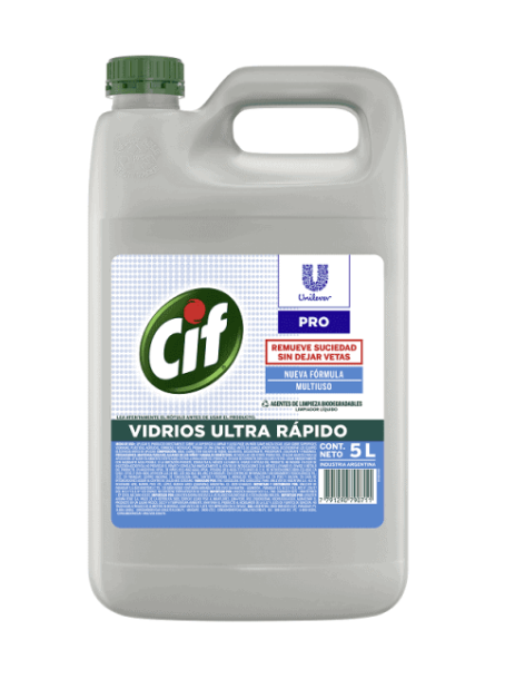 Cif Bioactive Vidrios & Multiuso es un limpiador líquido para vidrios y superficies delicadas que,gracias a su tecnología, permite una limpieza fácil y brinda un brillo impecable a tus superficies dejándolas libres de vetas y marcas de agua. Este limpiador cuenta con una fragancia biodegradable. La poderosa fórmula de Cif Bioactive Vidrios & Multiuso elimina fácil y rápidamente la suciedad dejando las superficies brillantes, como nuevas. En los cristales, también se acumula una gran cantidad de polvo y humedad, por lo que es importante utilizar una solución específica para limpiar vidrios y secar con un paño de microfibra. Algunas de las tantas superficies que podés limpiar con Cif Bioactive Vidrios & Multiuso son: heladera, refrigerador, mesas, ventanas, espejos; superficies de aplicación vidriadas, plásticas, acrílicas, fórmicas y metálicas. Para un mejor modo de uso: cortar el envase por la línea punteada; desenroscar el gatillo de su botella de CIF Vidrios; vertir con cuidado el contenido de la recarga en tu botella de CIF Vidrios; colocar el gatillo; Girar la punta del gatillo de la posición OFF la posición ON. Aplicar CIF Vidrios directamente sobre la superficie a limpiar y luego pasar un paño suave (tipo CIF Ballerina) hasta secar.