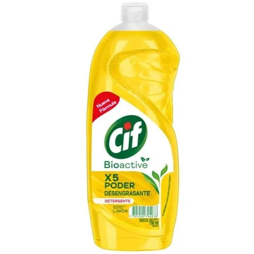 El detergente CIF Limón evolucionó y trae su mejor fórmula! Ahora más concentrada garantizando un máximo rendimiento. Su nueva fórmula, se mantiene por más tiempo en tu esponja garantizando una espuma de larga duración, para que con menos cantidad de producto puedas lavar muchos más platos. Tiene un X5 Poder Desengrasante, que elimina la grasa difícil, incluso de los plásticos desde la primera pasada, dejando toda tu vajilla limpia y brillante. Además, tiene una nueva y única tecnología BIOACTIVE, que tiene 100% activos biodegradables. El nuevo CIF Bioactive trae una nueva fragancia, que es también biodegradable y neutraliza los malos olores de toda tu vajilla. La botella del detergente concentrado Cif Limón, está hecha con plástico 100% reciclado y es también 100% reciclable, contribuyendo de este modo con el cuidado del medio ambiente. Para poder reutilizar esta botella, seguí los siguientes pasos: Lavá la botella de CIF Bioactive. Deséchala correctamente. Botella 100% plástico reciclado. Para usar el producto aplicá directamente en la esponja. Una vez que hayas terminado de lavar, enjuagá tu vajilla en agua caliente o fría.