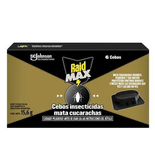 "Raid Cebos Es Parte De La Nueva Línea De RAID Para Proteger La Cocina. Estos Brindan Una Acción Continua Contra Cucarachas Durante 3 Meses. Matando Tanto Cucarachas Grandes, Pequeñas Y Sus Huevos, Sin Dejar Olor Ni Ensuciar. Se Recomienda Su Uso Combinado Con El Aerosol RAID Cocina Mata Cucarachas Y Hormigas. Disponible En Paquete De 6 Unidades. Efectivo Contra: *Cucarachas Instrucciones De Uso: 1) Abra La Bolsa Que Contiene Los Cebos. 2) Coloque Los Cebos Donde Haya Visto Cucarachas. Coloque Por Lo Menos 2 En La Cocina, 1 En El Baño Y 1 En El Lavadero. Para Cocinas Grandes O Infestaciones Severas Se Recomienda Utilizar Cebos Adicionales, Colocando 6-10 Cebos En La Cocina Y 1-2 En Cada Baño. Si Ve Cucarachas En Otras Áreas, Como Dormitorios O Alacenas, Utilice 2-4 Cebos Adicionales. Colóquelos En Lugares Inaccesibles Para Niños Y Mascotas. Importante Para Un Efectivo Control De Las Cucarachas Utilice Los 4 Cebos Al Mismo Tiempo. Coloque Los Cebos Junto A Los Zócalos, En Estanterías, Cajones, Debajo De Las Heladeras, Cañerías Y En Otras Áreas Por Donde Las Cucarachas Suelen Pasar. Las Cucarachas Comenzarán A Comer Inmediatamente Del Cebo, Y Usted Verá Menor Cantidad De Cucarachas En Pocos Días. Reemplace Todos Los Cebos Cada 3 Meses Para Evitar Que Las Cucarachas Regresen. Anote En Su Almanaque O En Algún Lugar Visible La Fecha En Que Deben Ser Reemplazados."