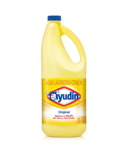 La Lavandina Ayudín Original elimina el 99,9% de bacterias y se recomienda para la desinfección de los pisos de la cocina, living, cuartos, baño, patio y balcón; la mesada, pileta y utensilios de cocina, artefactos del baño, las llaves de las canillas, el botón de descarga del inodoro y las manijas de todas las puertas de la casa. Desinfecta, desodoriza. La limpieza importa y la hacemos entre todos.