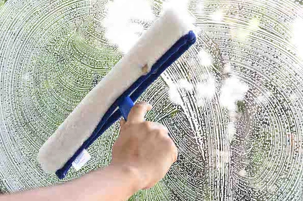 Lavavidrios Completo. Enjabona y lava los vidrios y espejos de manera eficaz y eficiente. Soporte T de aluminio y plástico con vellón. Para usar en forma manual o anexándolo a una extensión de aluminio profesional para trabajos en altura.