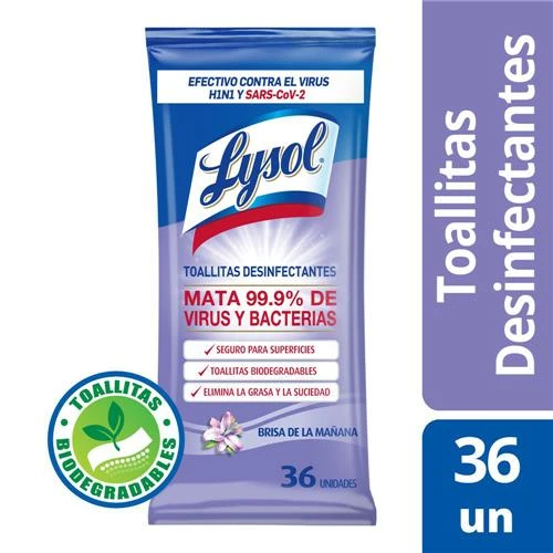 LYSOL Toallitas Desinfectantes Brisa De La Mañana Matan El 99,9% De Virus Y Bacterias, Incluidos El Virus H1n1 Y Sars-Cov-2. Su Familia Entra En Contacto Con Virus Y Bacterias Todos Los Días. Use Este Producto Como Una Forma Fácil Y Conveniente De Limpiar Y Desinfectar Las Superficies De Su Hogar. Cada Toallita Viene Humedecida Y Es Desechable.
