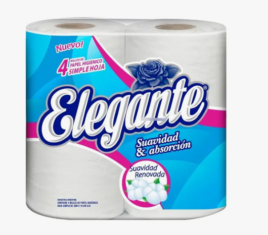 Papel Higiénico ELEGANTE Hoja Simple 30 Metros x 4 Unid.