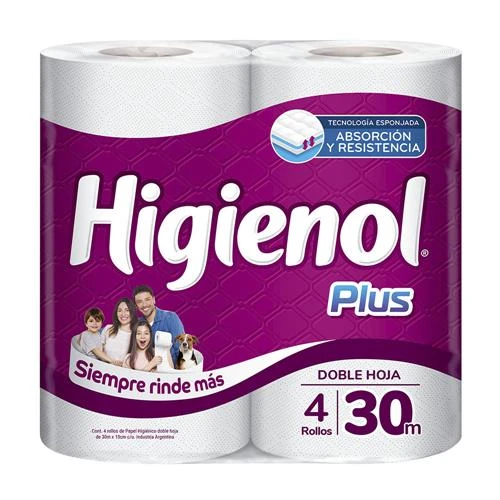 Papel Higiénico HIGIENOL Plus Fusión Doble Hoja 30 Metros 4 Unid.