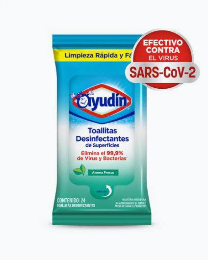 "Las Toallitas Desinfectantes Ayudín Aroma Fresco Son Una Forma Fácil, Rápida Y Conveniente De Limpiar Y Desinfectar Rápidamente Las Superficies De Cocina Y Baño. Las Toallitas Desinfectantes Ayudan A Proteger A Su Familia Eliminando El 99.9% De Los Gérmenes Y Bacterias Que Pueden Ser Dañinas En Las Superficies Duras, Desodorizando Al Mismo Tiempo, Ya Que Elimina Los Gérmenes Causantes De Los Malos Olores, Todo En 30 Segundos.Dentro De Casa Se Esconden Unos Enemigos Silenciosos Que Albergan Bacterias Y Gérmenes. Se Trata De Esos Pequeños Objetos Que Usamos Frecuentemente Y Nos Olvidamos De Limpiar. Para Evitar Que Se Conviertan En Hogar De Enfermedades, Es Recomendable Usar Las Toallitas Desinfectantes Ayudín Que Gracias A Sus Ingredientes Activos, Te Ayudarán A Prevenir Que Tu Familia Se Contagie De Cualquier Virus Al Tener Contacto Con Elementos De Uso Común Como Picaportes, Controles Remotos, Interruptores De Luz Y Teléfonos Celulares.Este Producto Será El Gran Aliado Para Ayudarte En La Misión De Mantener Tu Casa Limpia Y Libre De Bacterias O Virus Que Puedan Transmitir Enfermedades A Vos O A Tu Familia."